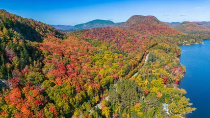 Mont Tremblant National Park has more than one way to explore the brilliant hues of autumn. Once you've gotten to the pedestrian village, you can take the Panoramic Gondola to get to the summit. From that vantage point, you can see the colors reflected in Lake Tremblant and the vast forests. On top, you can climb the observation tower for a 360-degree view. It's open until mid-October, and then opens again in November for skiing season. A fall round-trip ticket is $32 for adults at the time of this writing, though you get $1 off if you book early, and there's discount pricing for seniors and kids as well. You can also hike your way up. There are plenty of trails, with some starting at the summit, but you can hike the Summit of Mont Tremblant via Grand Brulé and Les Caps Trail, a 6.8-mile loop from the village to the top with a 2,083-foot elevation gain. At the summit, you'll also find a chalet where you can eat, which isn't something you get on a normal hike. Note that many hikes also allow leashed dogs.
