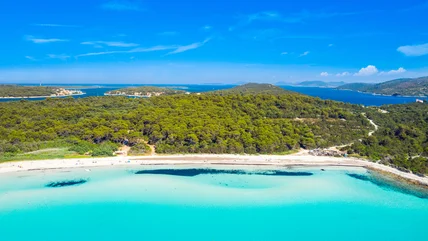 Sakarun Beach stands out as a superstar on this list. It's a mecca for those who love turquoise waters and pristine white sand. Here, the shoreline stretches far in both directions, so it's no wonder the beach is often referred to as the "Caribbean of the Adriatic." It's conveniently located on the island of Dugi Otok — also called Long Island — the largest one in the Zadar Archipelago and not too far from the mainland. Tucked into a sheltered nook on the northern end of the island, its exquisite waters are protected from large swells and strong winds, making it a paradise for anyone seeking a calm, relaxing dip and lounging experience.