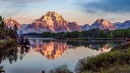 Unlike most mountain ranges that ease into gentle foothills, the Tetons shoot straight up from the valley of Jackson Hole, creating a striking skyline. It was these same jagged, snow-capped peaks that stopped French explorers in their tracks as they crossed western Wyoming, compelling them to name the range "Les Trois Tétons," which means "the three breasts." These rugged mountains and dramatic landscapes are also home to wildlife such as bison, pronghorn, and elk, while the park's pristine waters provide a rich opportunity for fishing, boating, and other water-based activities.
