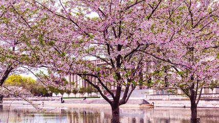 Chicago is already considered the most beautiful city in the world, according to one study — and in spring, the city lives up to that title even more. Approximately 200 cherry blossom trees bloom in Chicago's Jackson Park each year, attracting locals and visitors alike. The event is short but sweet — the trees reach their "peak bloom" for just 6 to 14 days between late April and early May. The park covers more than 540 acres on Chicago's South Side, right on the shore of Lake Michigan. The blossoming trees flank the Columbia Basin, a pond south of the Griffin Museum of Science and Industry.